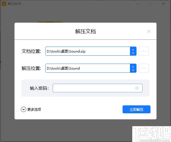 6、然后同样设置文件的解压位置,如果有密码的话,在输入框中输入正确的密码。